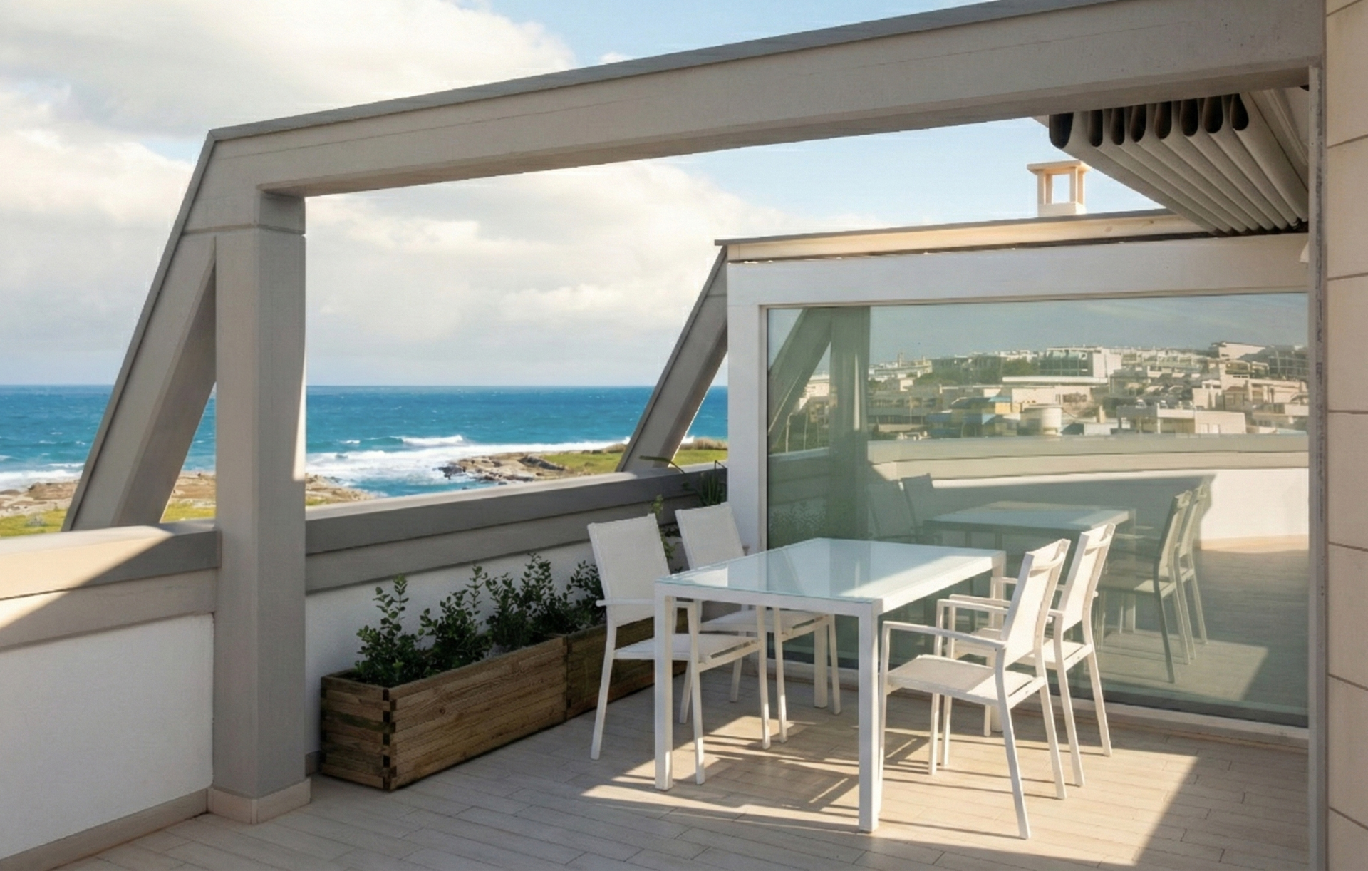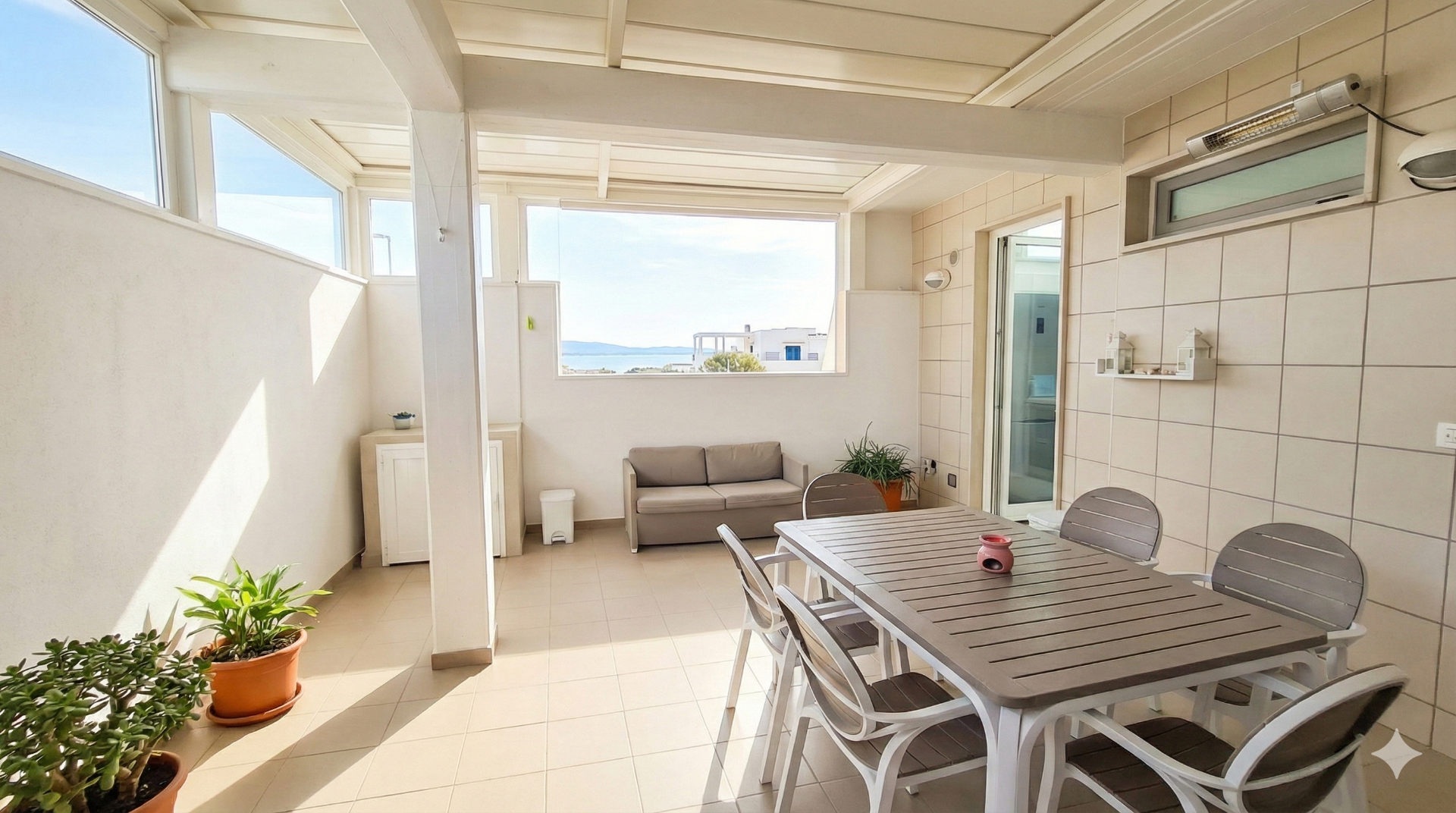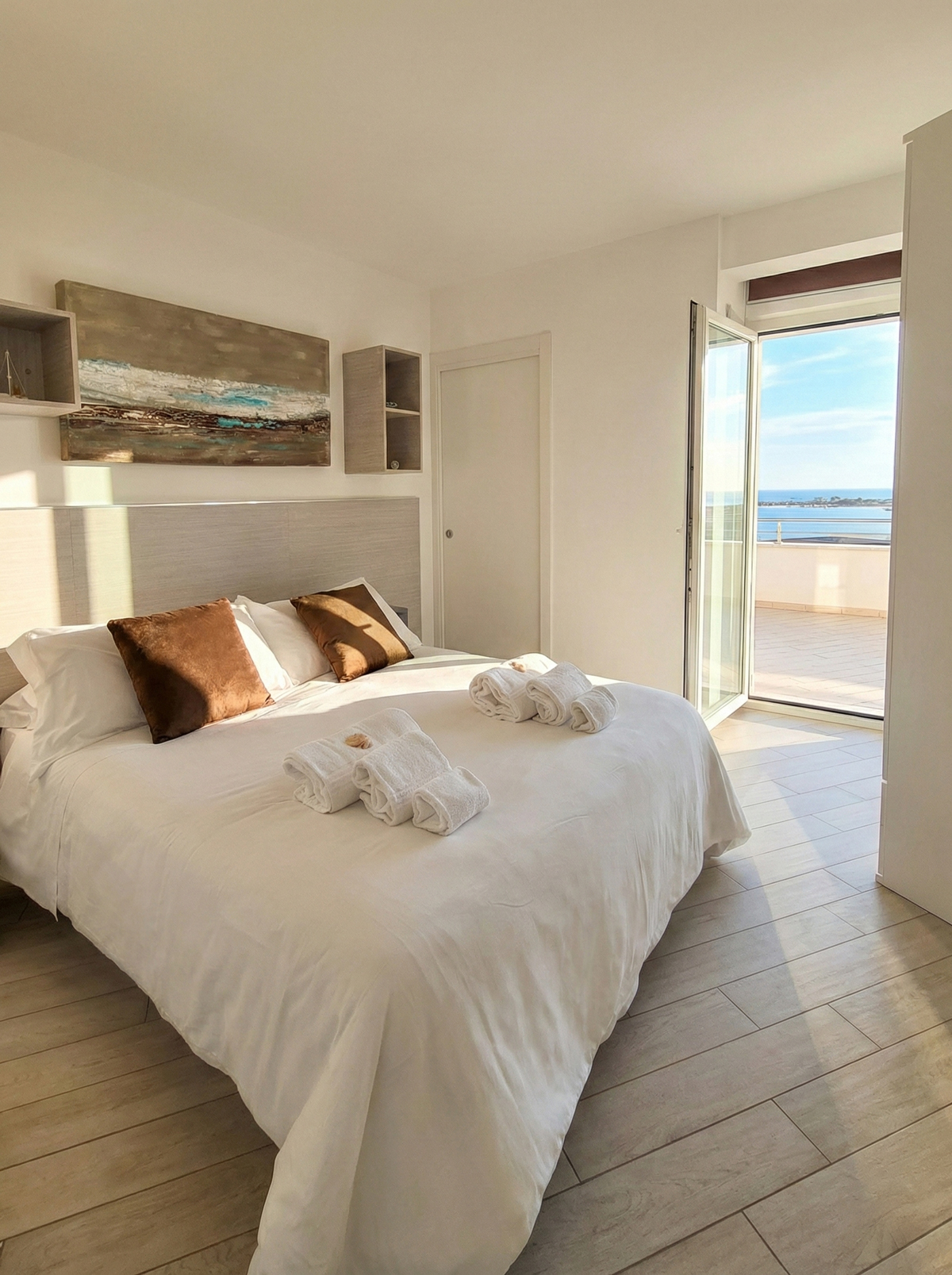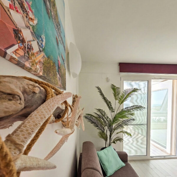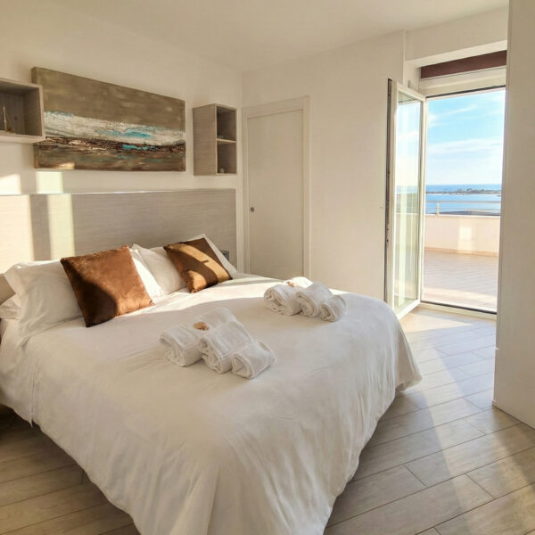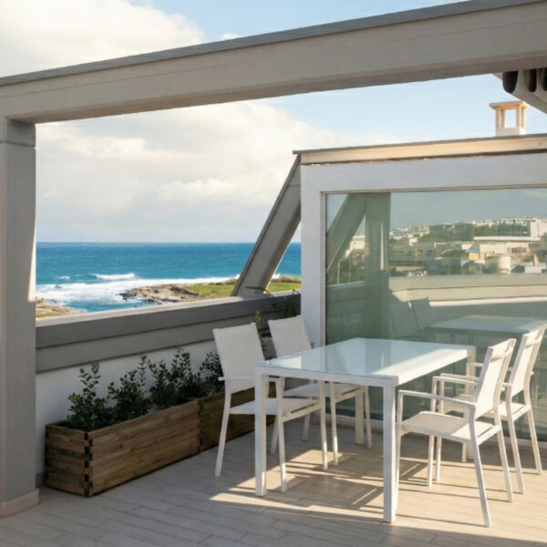 L’emozione di vivere tra il cielo e l’azzurro del mare. L’attico Alta Marea è un inno allo stile mediterraneo. Un rifugio luminoso, fresco, arioso e arredato in perfetto stile mare dove il confine tra interno ed esterno svanisce grazie alla vista dominante. Due splendide terrazze con spazi esterni privati dove cenare sotto le stelle o godersi il sole di Monopoli con lo sguardo rivolto all’orizzonte